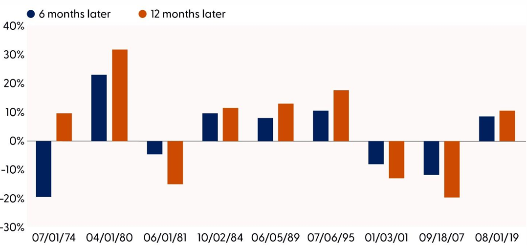 S&P 500 performance after start of Fed rate cutting cycles